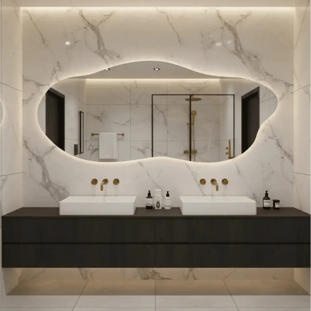 Mirage incarne l’élégance du design contemporain à travers une silhouette fluide et organique. Ce miroir en forme de vague sublime la salle de bain comme les espaces de vie, en apportant une touche artistique, raffinée et résolument haut de gamme.