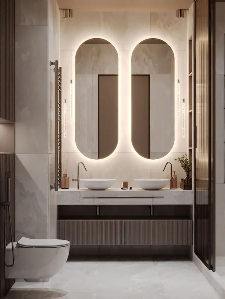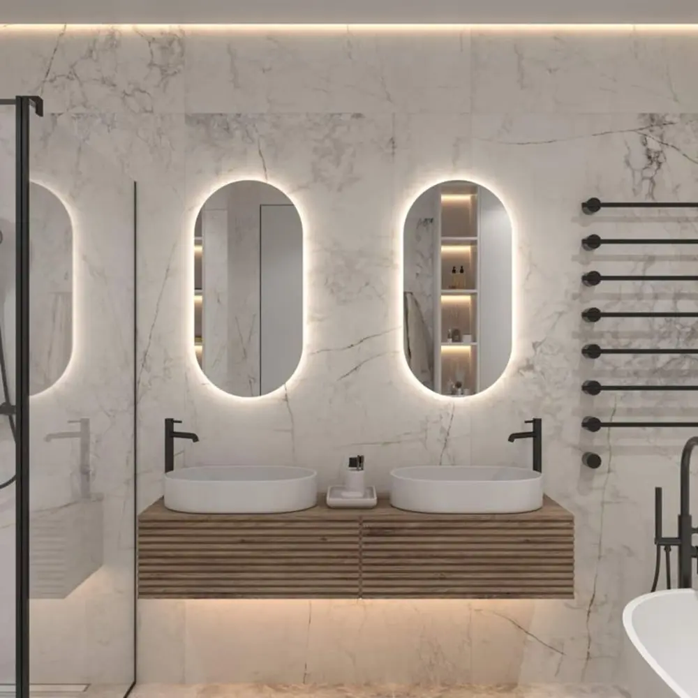 Sublimez vos espaces avec le miroir Evola semi-oval rétroéclairé, alliant design moderne, élégance et modularité. Conçu au Maroc et personnalisable sur-mesure, il s’adapte parfaitement à toutes les salles de bain et murs décoratifs